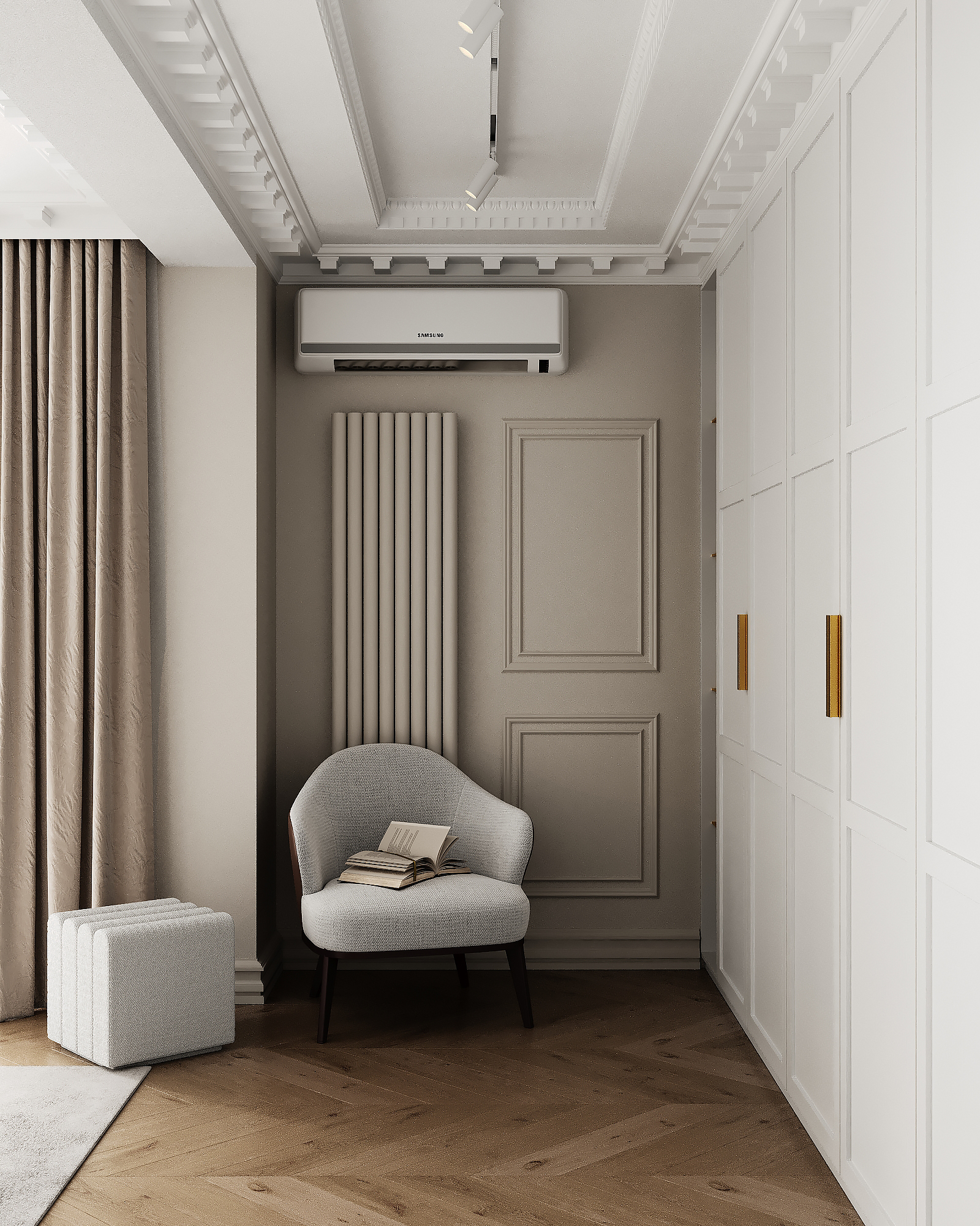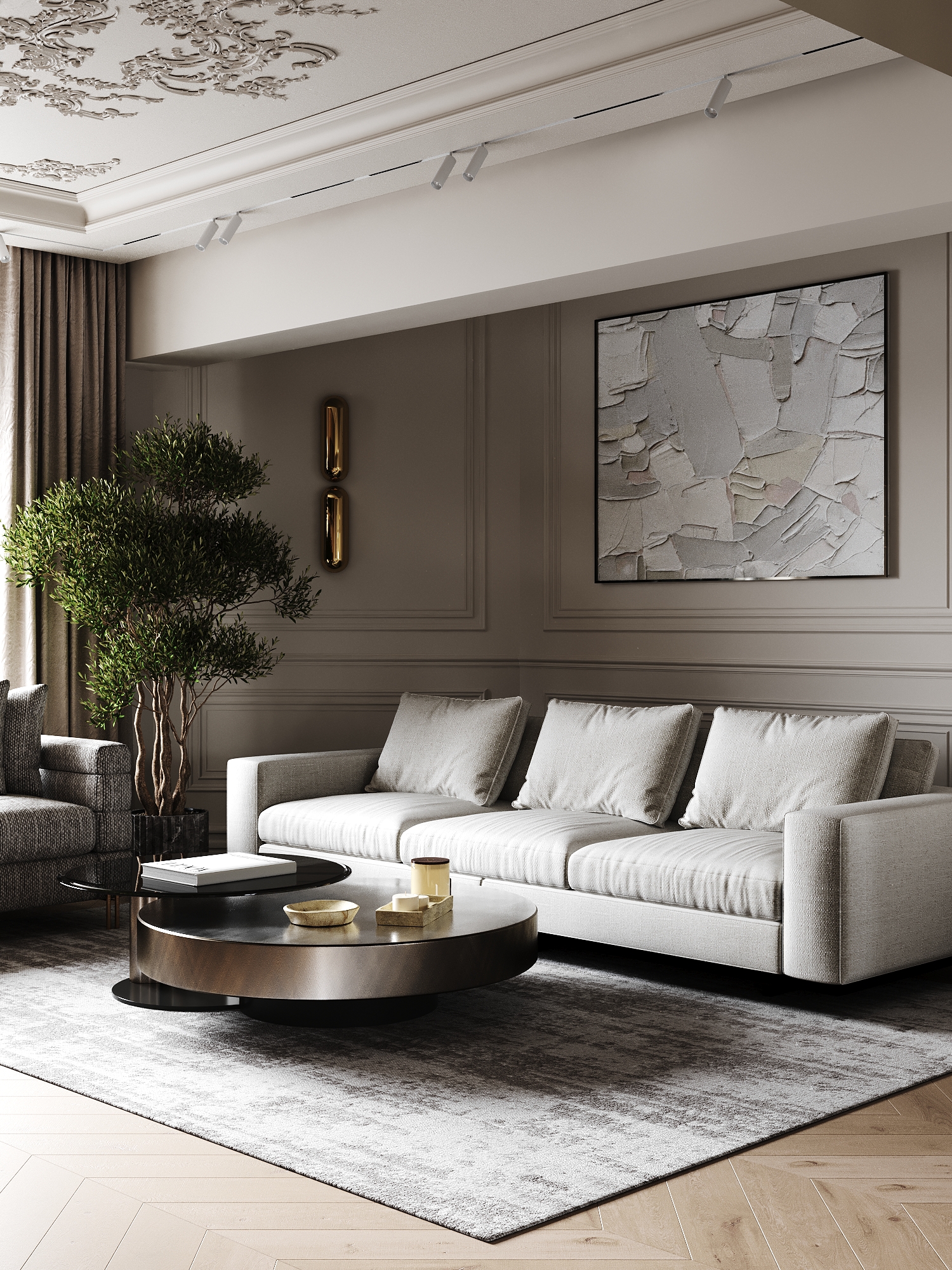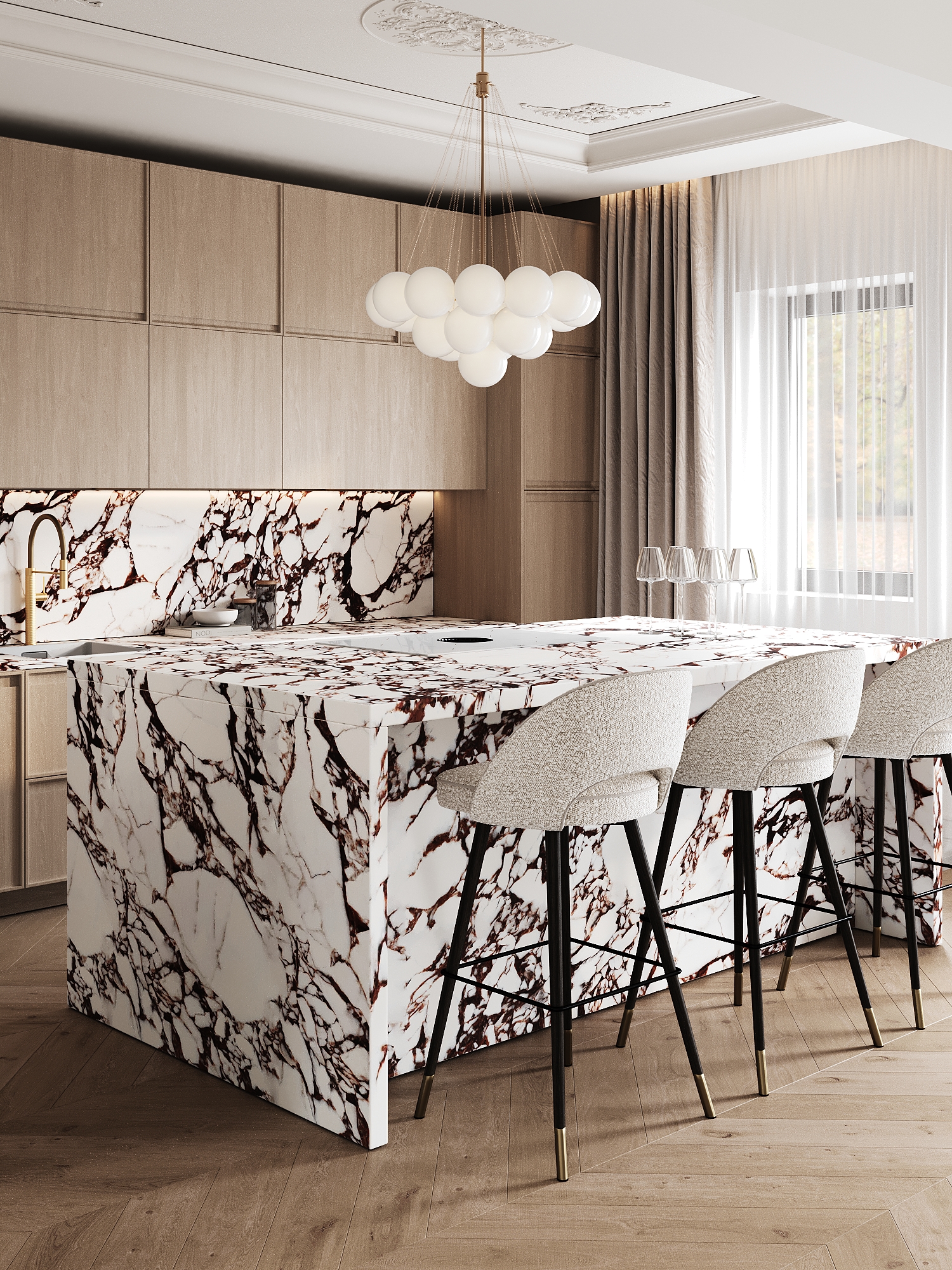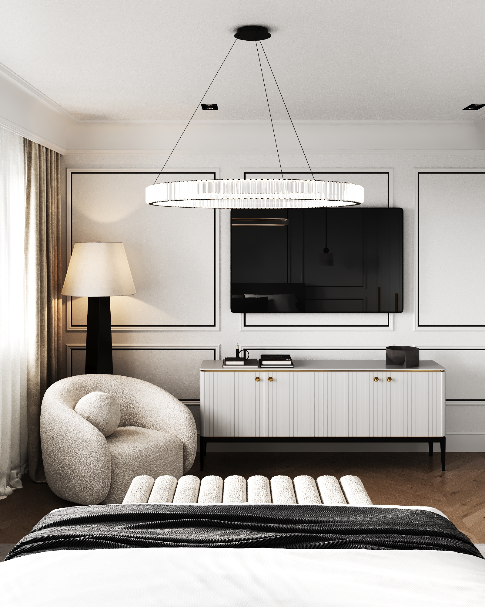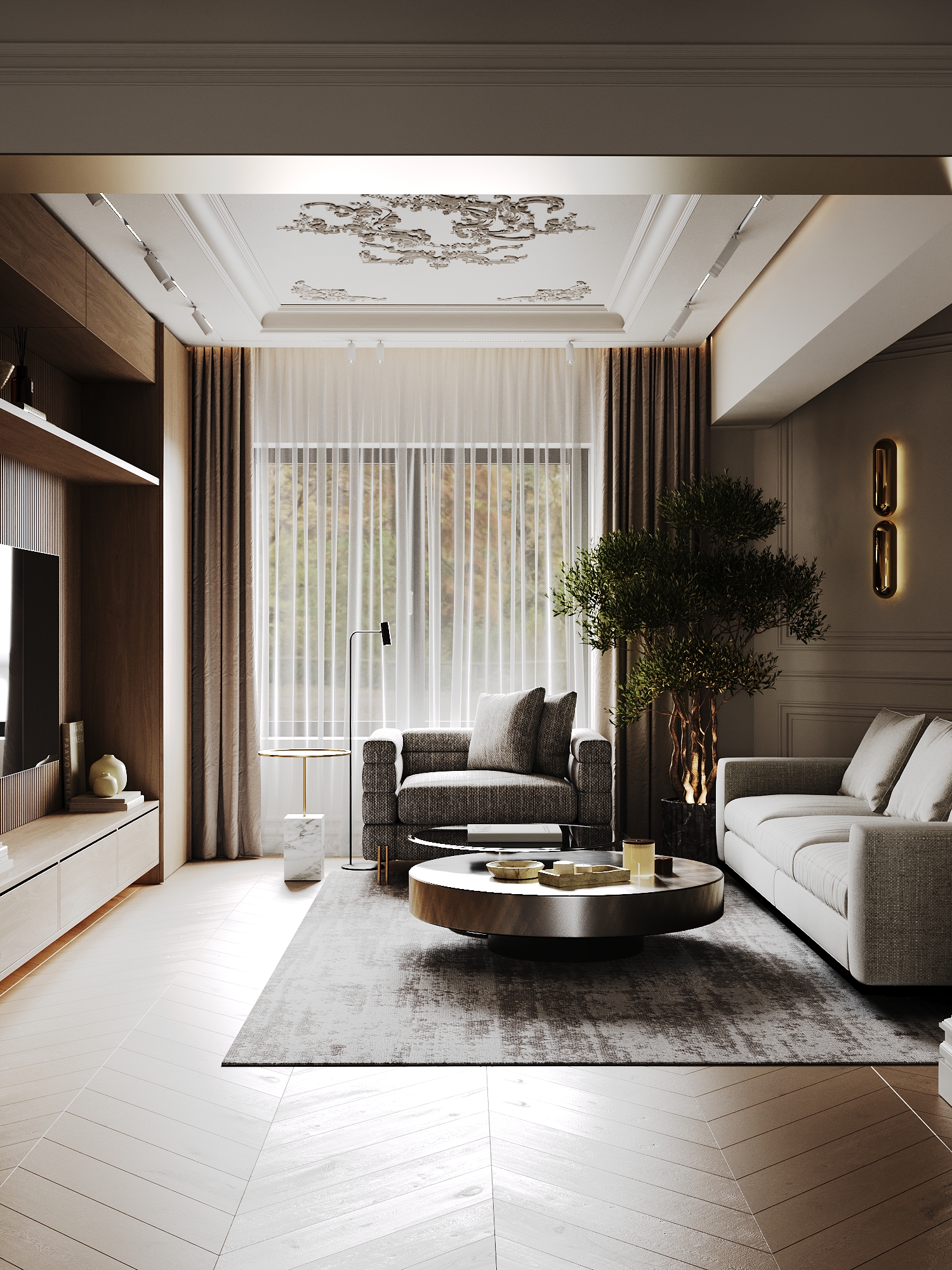 A refined blend of modern functionality and timeless elegance, this contemporary family residence embraces a soft palette of beige, white, and nude tones, layered with natural textures and subtle classical accents. – Modern, elegant, soft, natural.