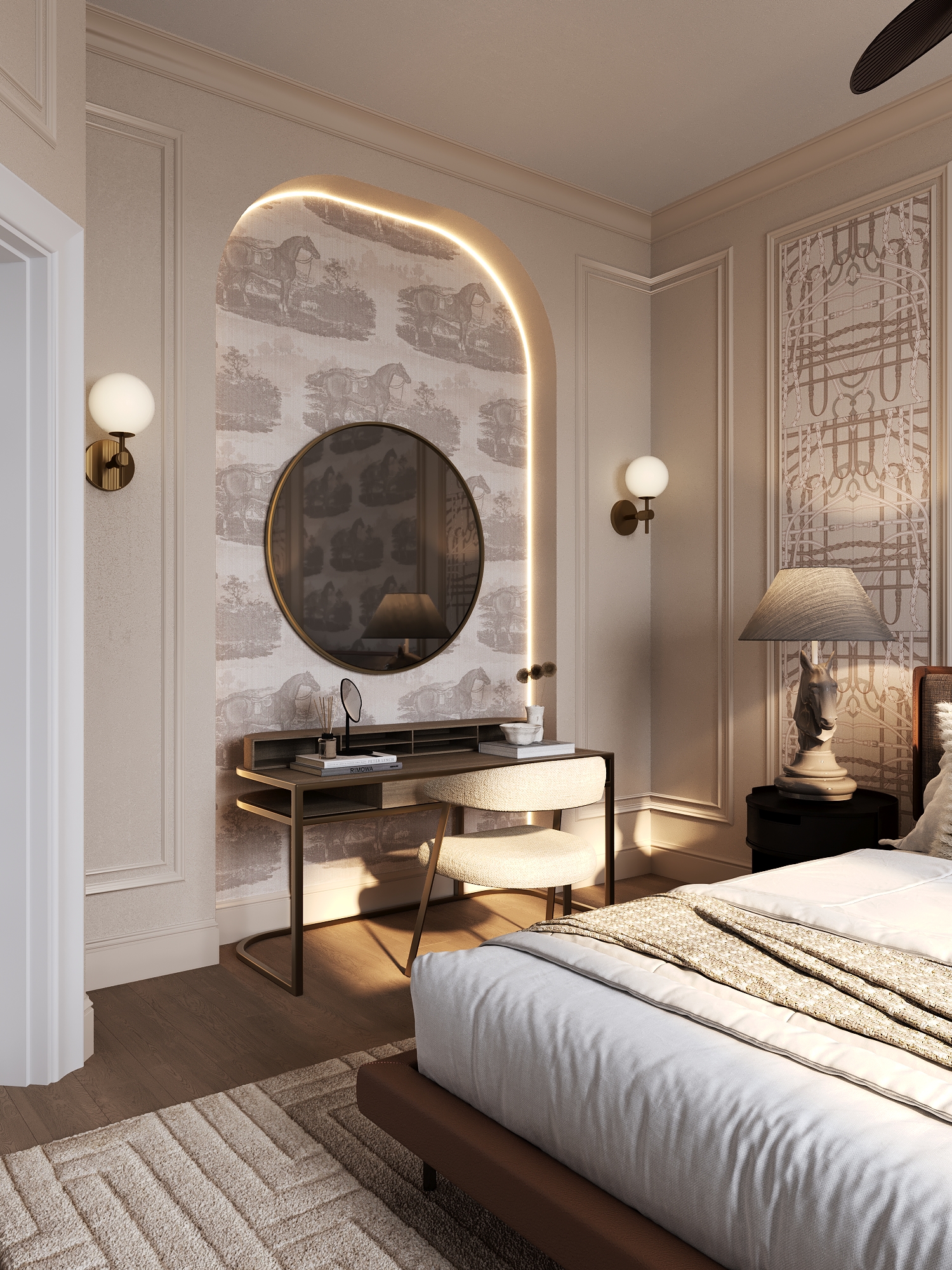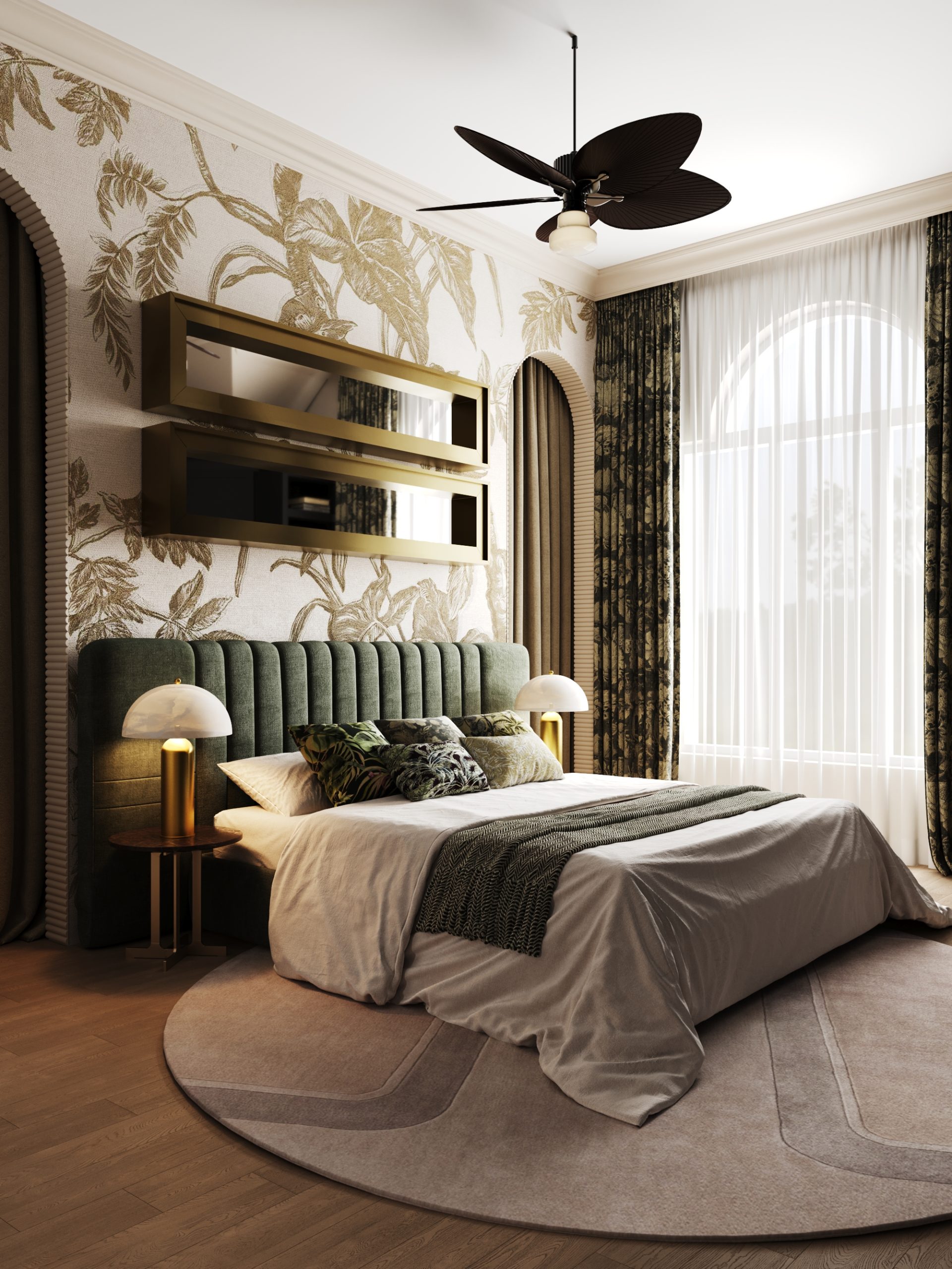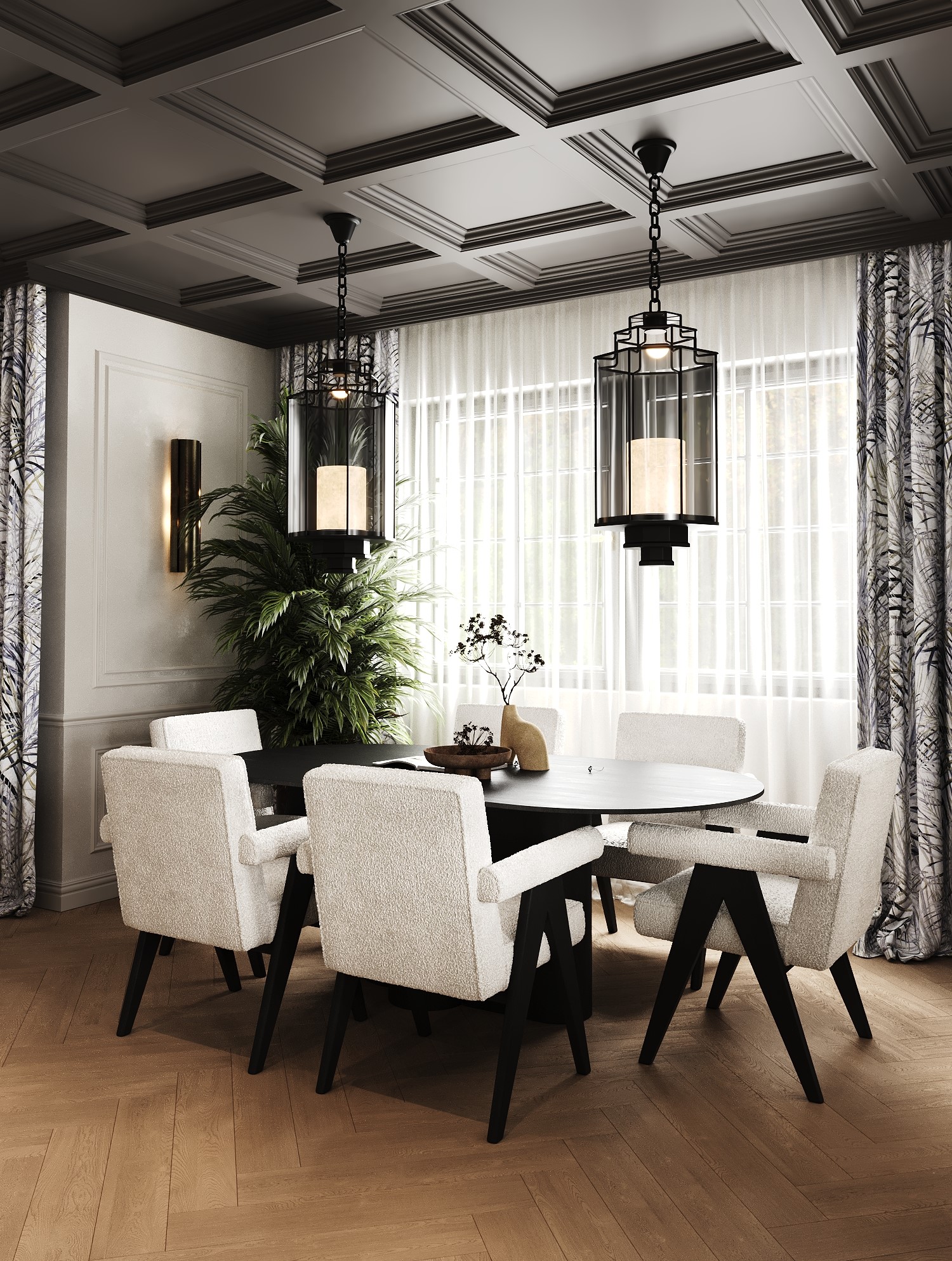 A warm, elegant family home. The interior combines classic architectural elements with botanical motifs, rich textures, and natural tones that bring a sense of calm and comfort. This project is a beautiful blend of tradition and creativity, where each room tells a story of refinement, warmth, and style. – Classic architecture, calm, warmth.