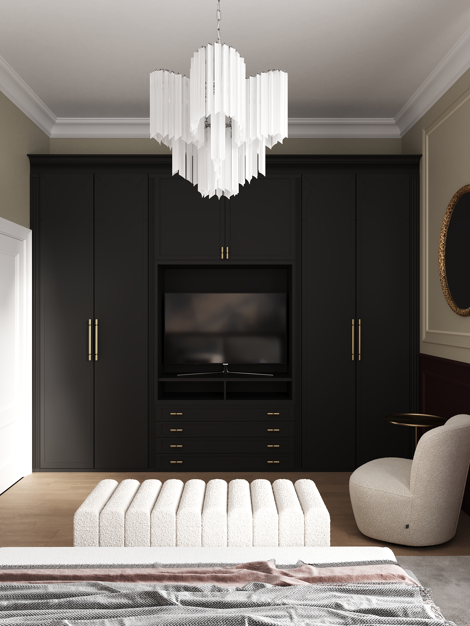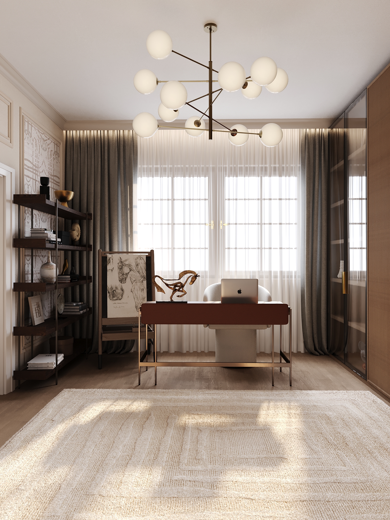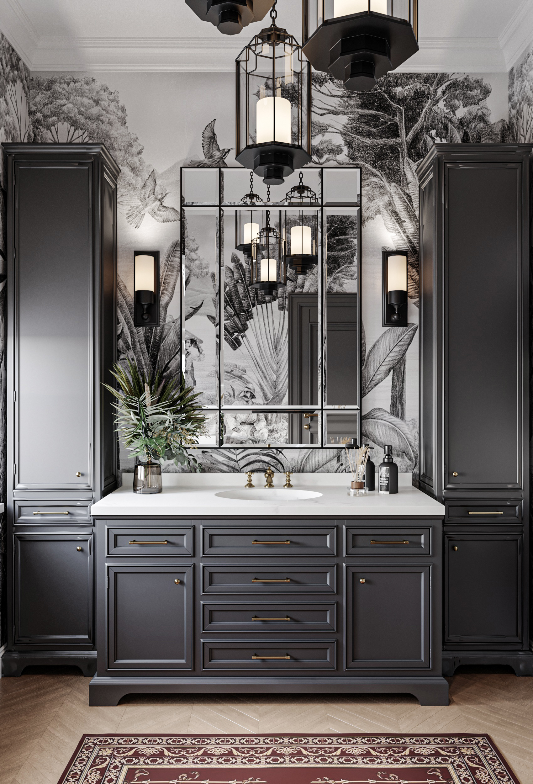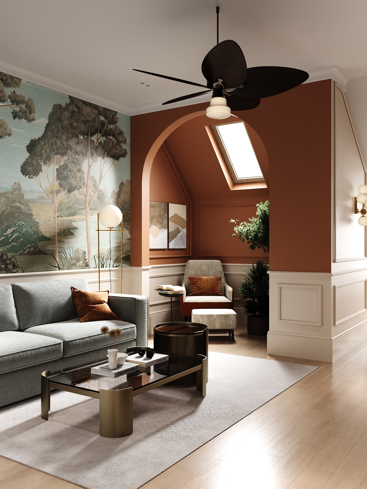 A warm, elegant family home. The interior combines classic architectural elements with botanical motifs, rich textures, and natural tones that bring a sense of calm and comfort. This project is a beautiful blend of tradition and creativity, where each room tells a story of refinement, warmth, and style. – Classic architecture, calm, warmth.